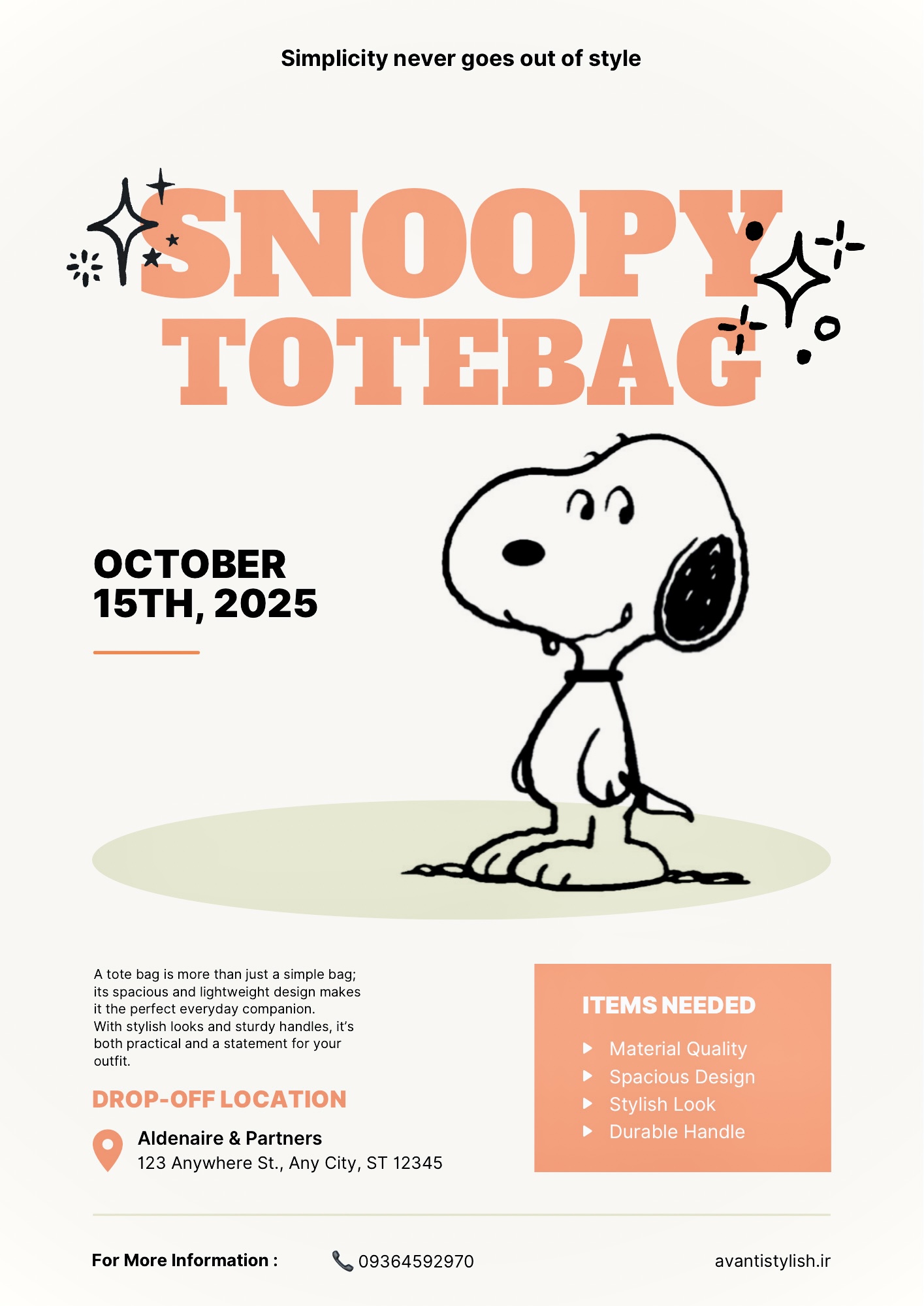 آویز اسنوپیناموجود- توتبگ بسوی فردا مشکیناموجود